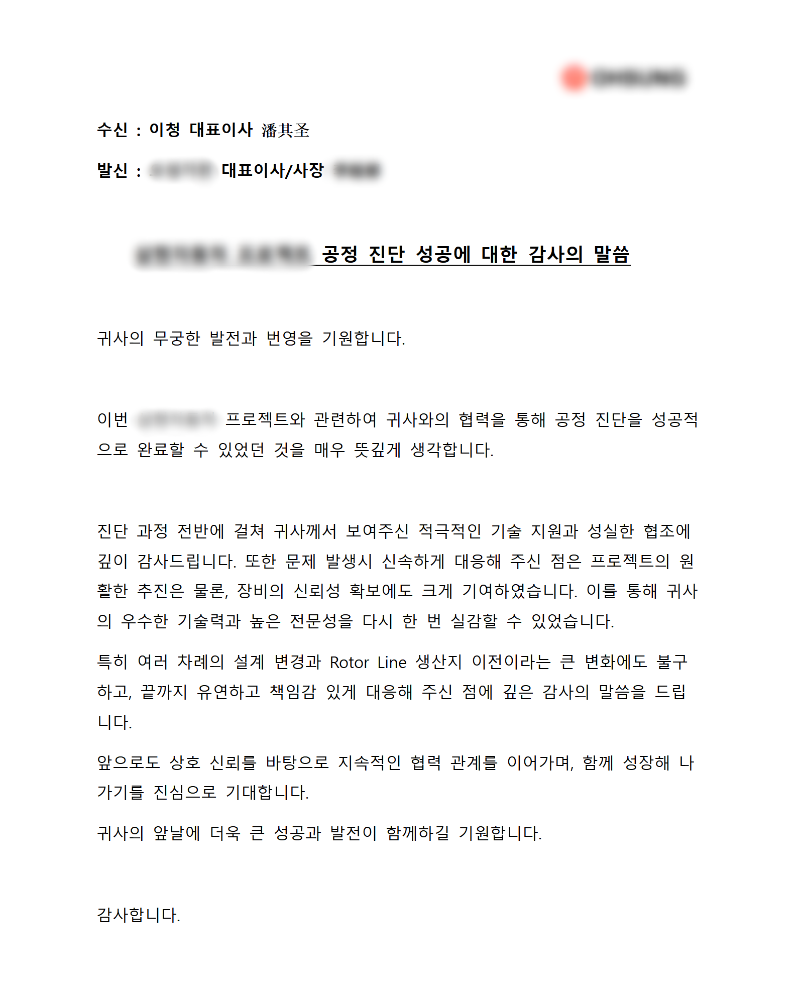 近日,益誠(chéng)公司為某韓國(guó)知名客戶量身打造的汽車馬達(dá)自動(dòng)化生產(chǎn)線項(xiàng)目取得重要階段性成果,順利完成核心階段的全面工藝診斷工作。在該項(xiàng)目執(zhí)行期間,益誠(chéng)團(tuán)隊(duì)?wèi){借高度定制化的解決方案、卓越的專業(yè)能力與出色的項(xiàng)目表現(xiàn),贏得了客戶的高度認(rèn)可,喜獲該客戶方發(fā)出的官方書面感謝信。