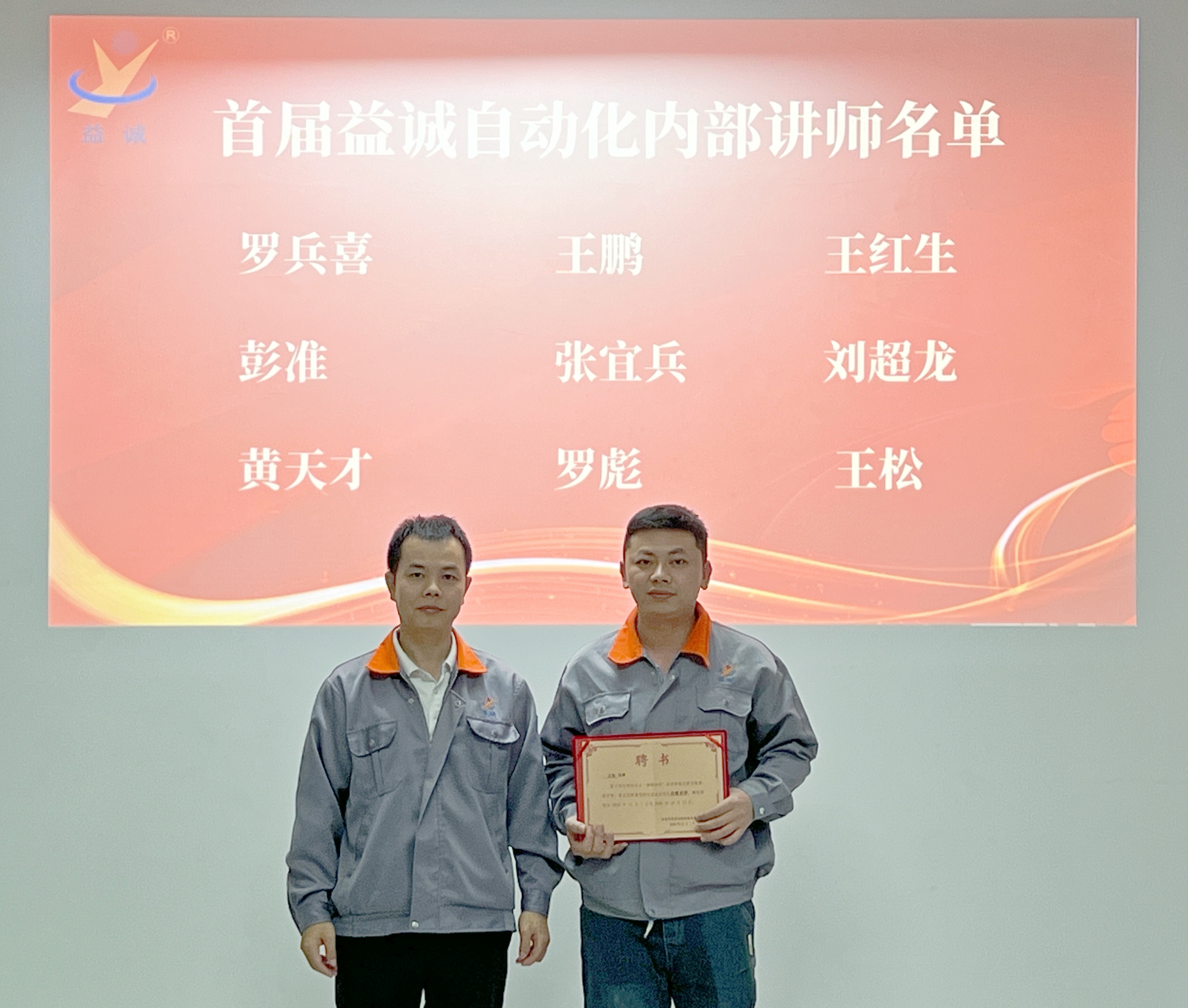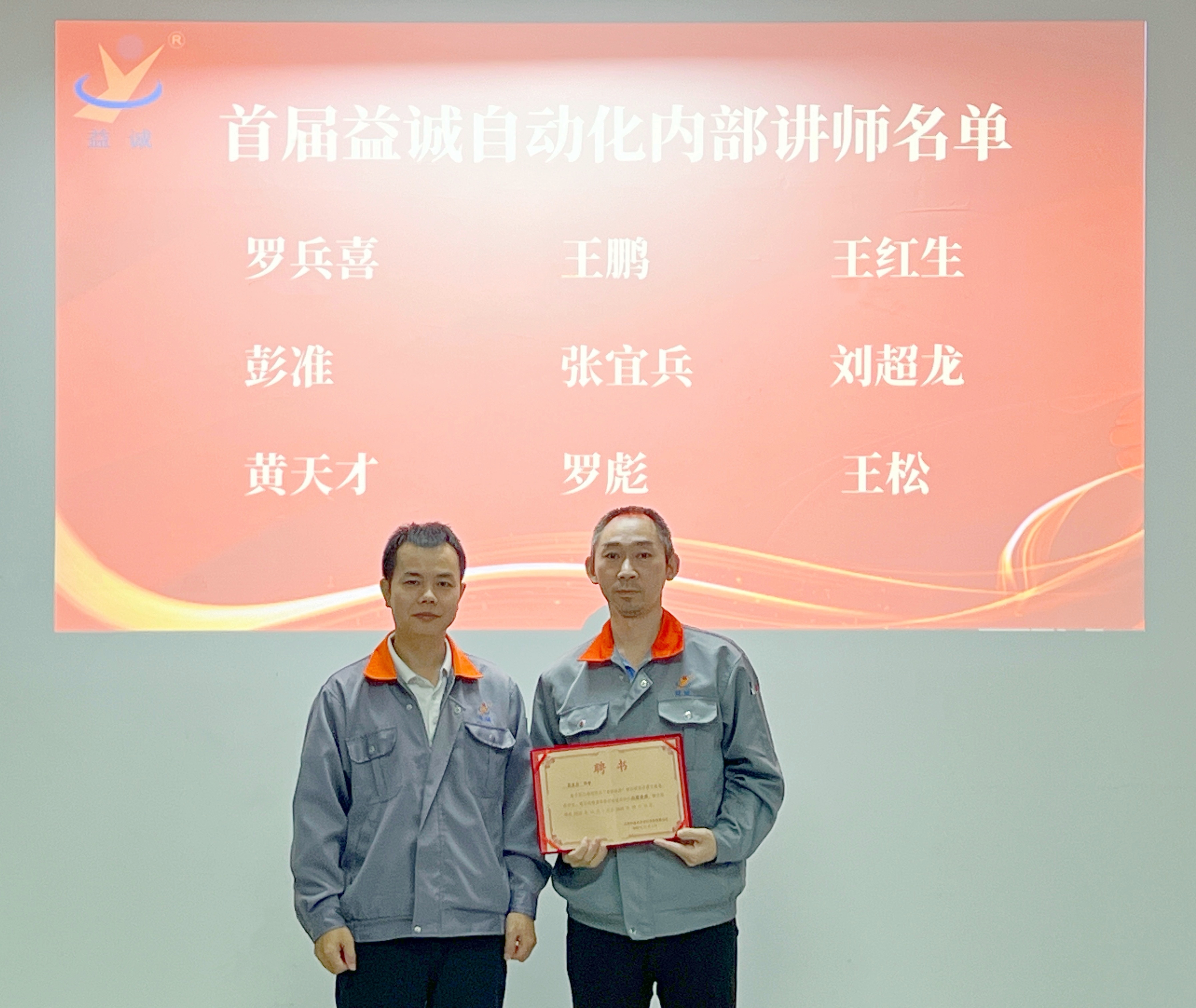 益誠自動化總經(jīng)理潘總親自為首批內(nèi)部講師頒發(fā)聘書,潘總勉勵大家:“這張聘書承載的不僅是榮譽與信任,更是責任與期待,希望大家成為公司智慧傳遞的橋梁,在教與學中激發(fā)思考,在傳與承中凝聚力量,為公司高質(zhì)量發(fā)展持續(xù)注入人才動能。”